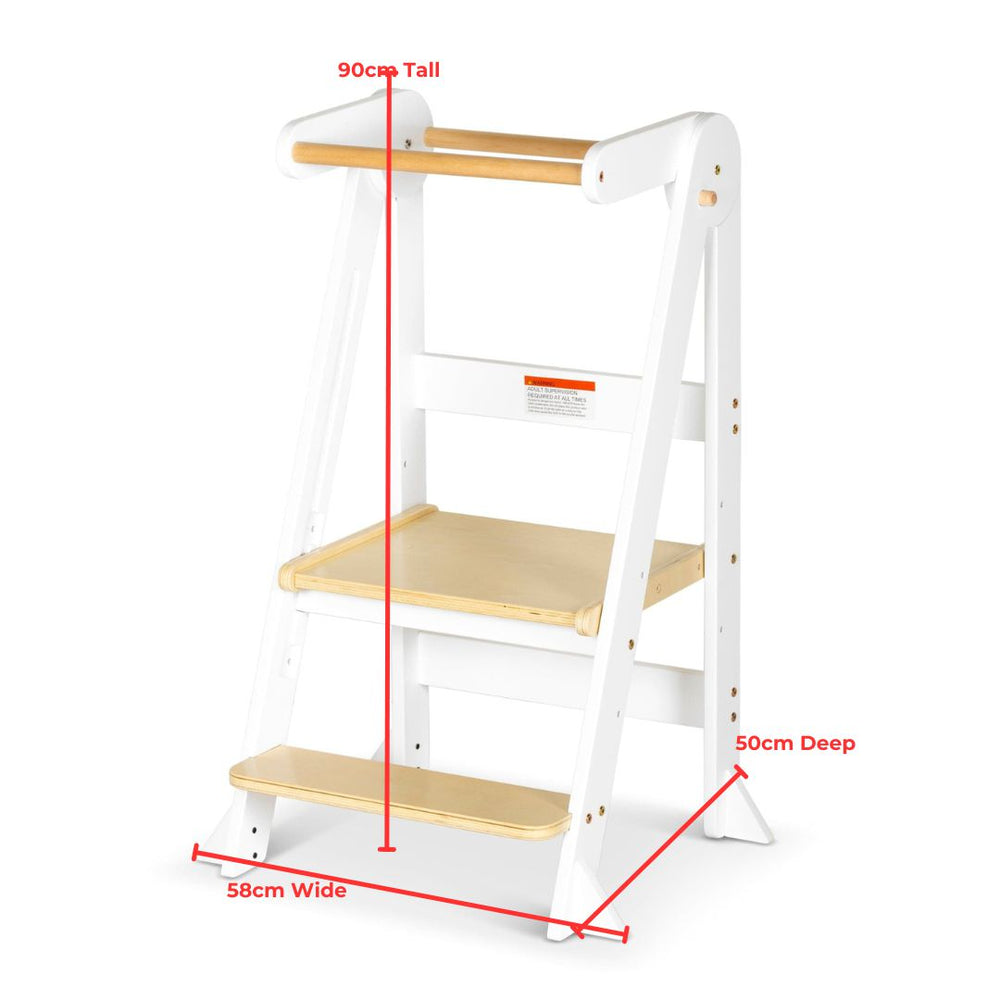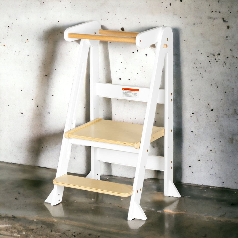 Adaptable Growth Support: Elevate Every Stage: Crafted with a focus on your child's evolving needs, the Folding Adjustable Learning Tower boasts three integrated platform heights. From early toddlerhood to the adventurous stages of growth, this tower stands by your child's side, offering a secure platform that adapts as they do.