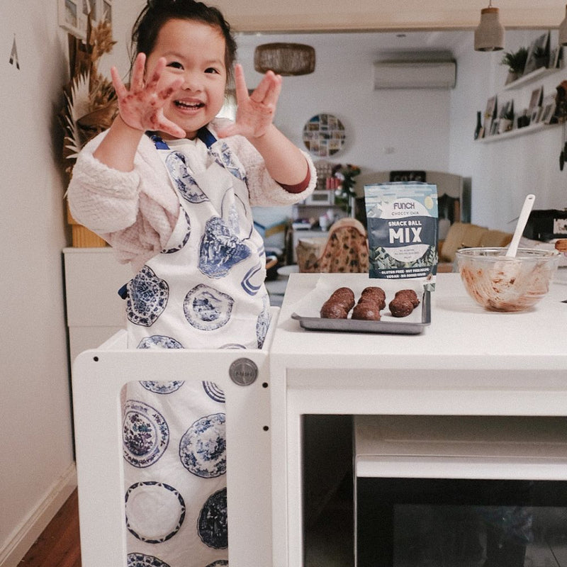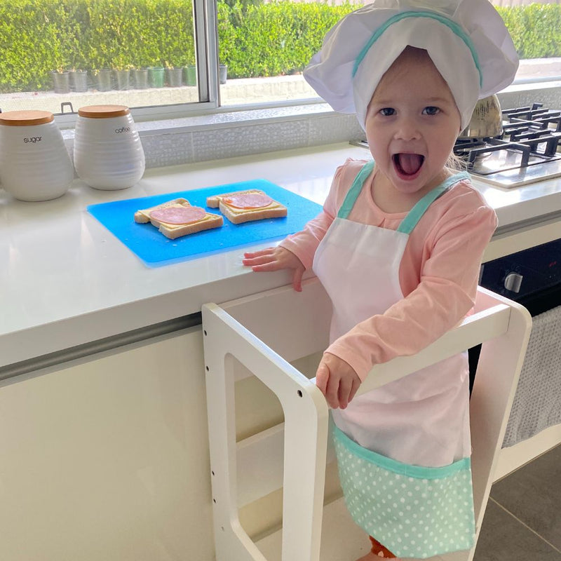 Brown Checkers Toddler Aprons for Baking and Cooking