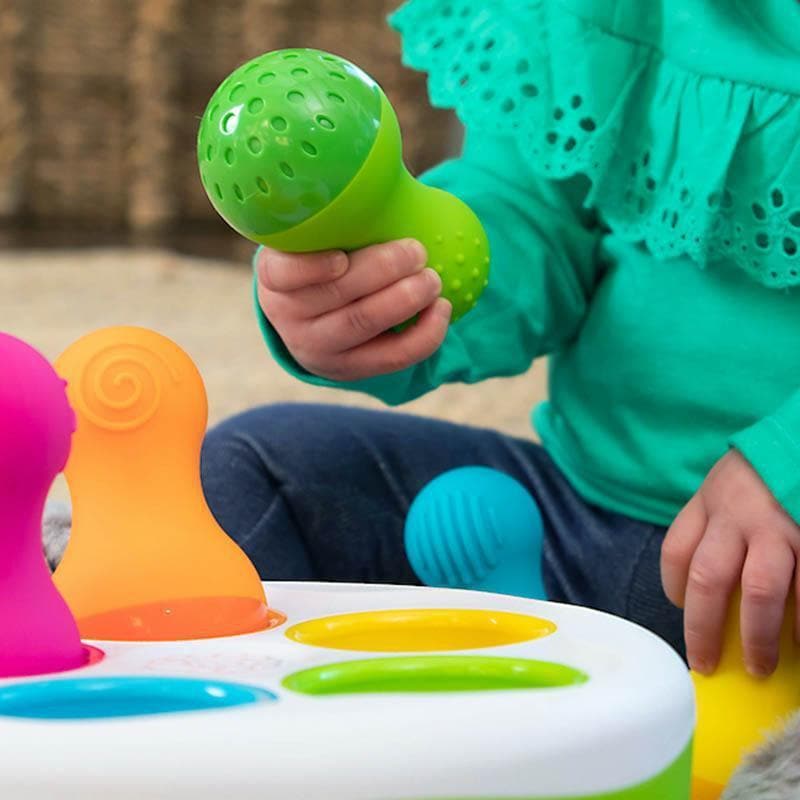 Each of the five colourful pins features fascinating textures to feel plus a weighted base that wobbles wonderfully.