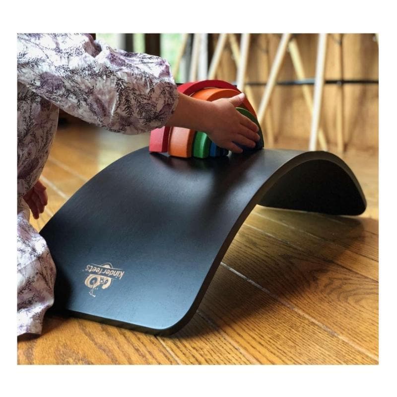 Watch in amazement as your child discovers all the incredible ways to play with their Kinderboard. It can be a seesaw, a balance board, a slide, a step stool, a boat, a resting place, a doll bed, a puppet stage, a tunnel, and whatever else they can imagine!