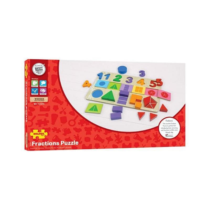 Bigjigs Toys My First Fraction Puzzle is the perfect to introduce early math's concepts of fractions and numbers to preschoolers. Children can match the colour shapes and numbers on the base board and count how many pieces make a whole.