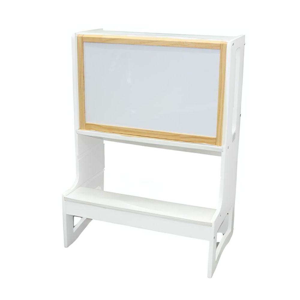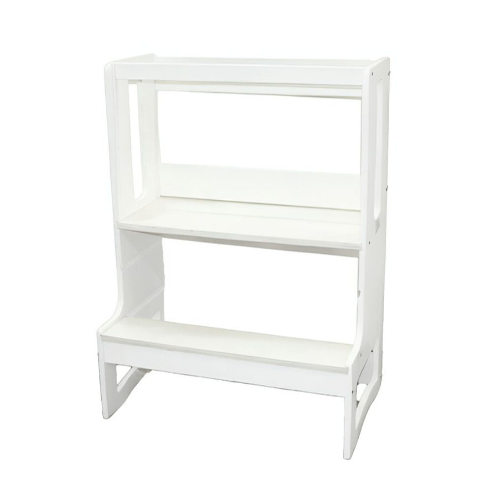 Our WHITE adjustable Double Learning Tower is the ultimate learning tool designed for both little toddlers and big kids. Whether they're baking, crafting, playing with playdough, engaging in water play, or completing puzzles, our twin learning tower ensures their safety and comfort while keeping them at your level for interactive and secure play and learning.