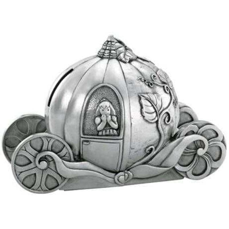 Recreated in pewter, Cinderella’s signature pumpkin-shaped carriage splits into two to serve not only as bookends, but as a pair of coin boxes.