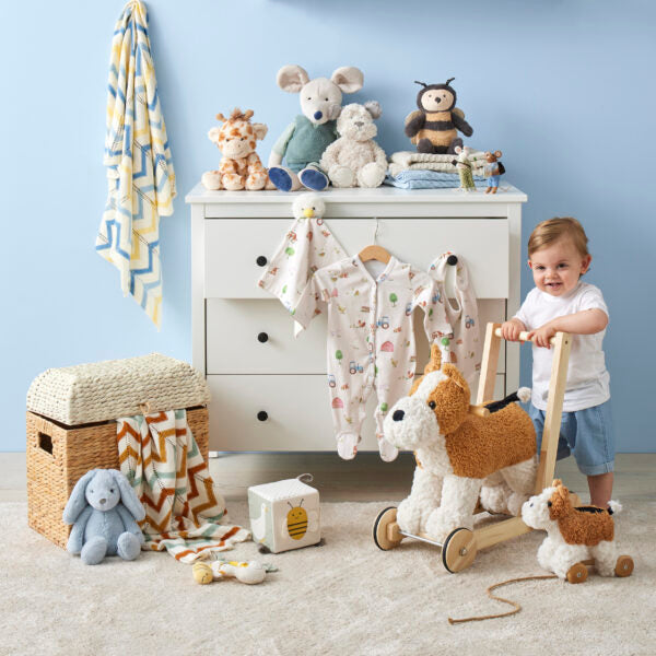Introducing the Delightful Plush Dog Walker, the perfect playmate to help your little one on their journey from sitting to standing, rolling, pushing, and walking! Thoughtfully crafted to support early development, this adorable dog walker provides a sturdy and safe foundation for your child’s first steps. The soft, plush finish makes this dog not only a reliable walker but also a cuddly companion that’s always ready for a hug.
