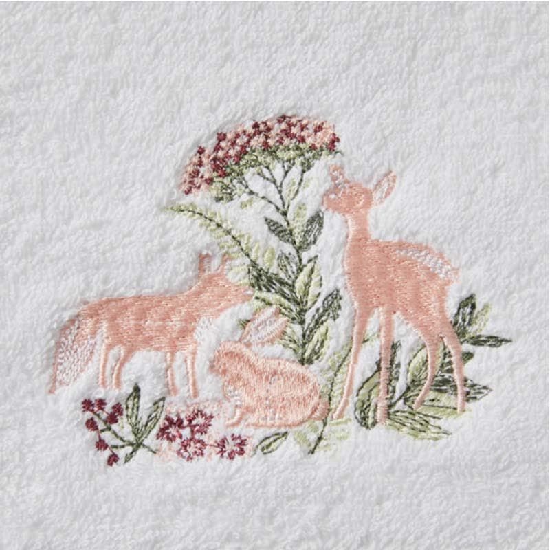 Matching Embroidered Baby Bath Towel and Face Washer presented in a delicate white Organza Bag. Perfect for gifting.