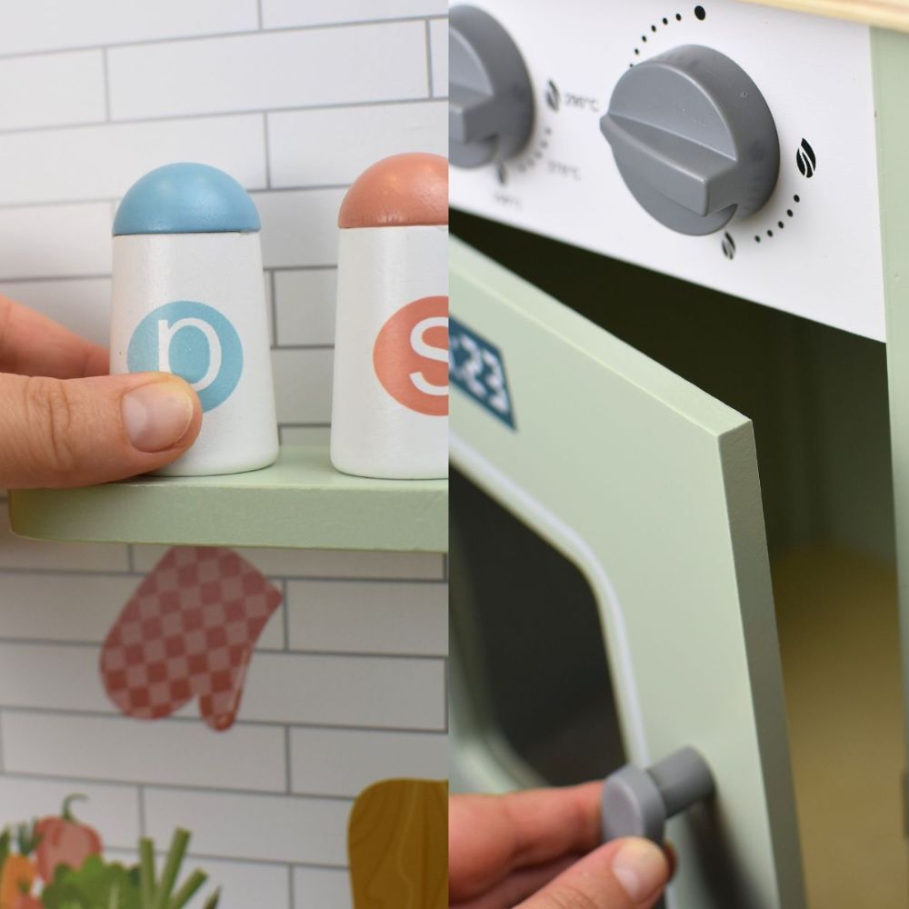 Tooky Toy's Wooden Play Kitchen Set combines fun and learning, making it an ideal addition to any playroom where young chefs can cook up a world of imaginative delights.