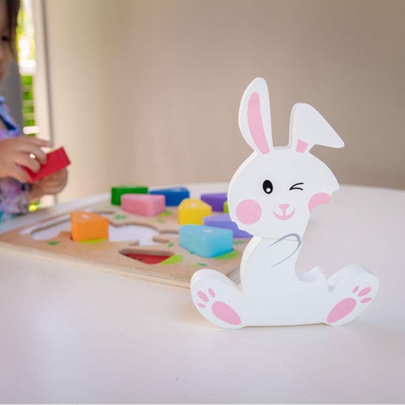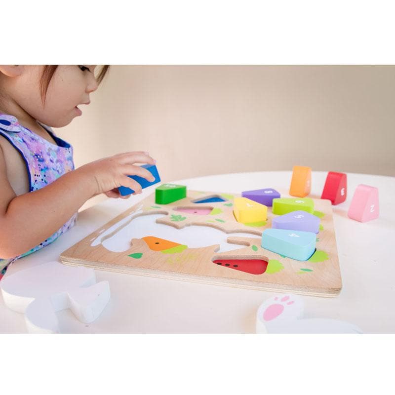 - Asking the child to identify the colours of the carrots and to match them with the colours on the puzzle board