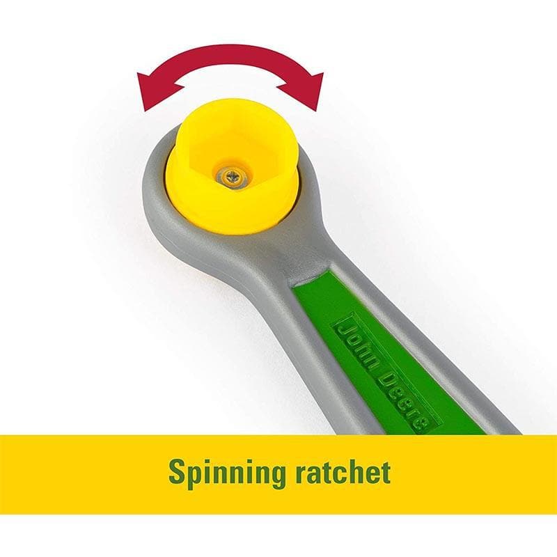 The John Deere deluxe talking tool belt is a perfect set for your little fixer-upper! The adjustable belt features a slot for each tool and an electronic belt buckle with 3 tool sounds and 2 phrases; “nothing runs like a Deere” and “it’s time to work on our John Deere tractors!”