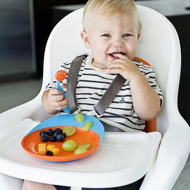The Catch Plate with Spill Catcher is a lifesaver when kids are learning to eat, and mouth and fork don't meet. The built-in lip extends from the plate towards your child, so little spills funnel back into the plate. (Something ordinary bibs can't do!). There's also a suction cup on the bottom of the Catch Plate so it cannot accidentally be knocked over or sent flying.