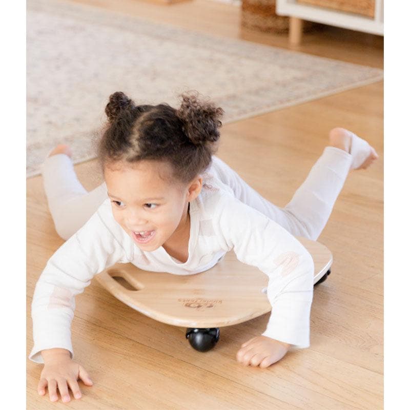 Take flight on the Tummy Glider and see how far your momentum can take you! Crafted from sustainably-sourced bamboo, this active toy invites children to explore a range of eco-friendly active play options - push, pull, scoot, slide, spin, and race!