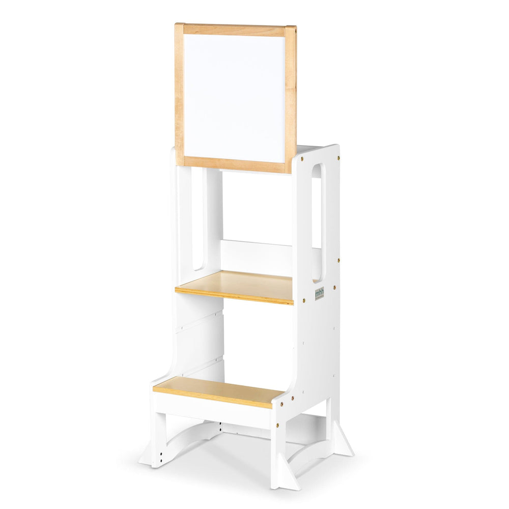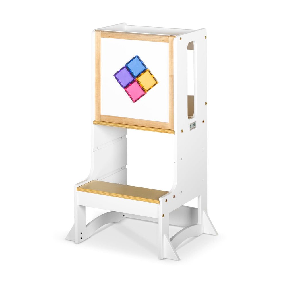 Magnetic Board for Enhanced Safety and Interactive Learning: The Learning Tower Magnetic Board, thoughtfully included, serves as an additional safety measure, preventing curious toddlers from scaling the tower in your absence.  It is important to note that your child should be able to safely use the Learning Tower without the need for Magnetic Board Accessory. If your little one can’t use the tower safely without the board, then we would recommend the tower be removed from use until a later point in time. The Magnetic Board should never be relied upon to keep your child in the tower.