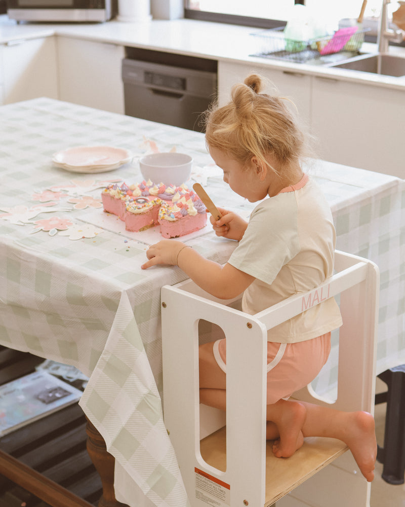 Unleash Their Inner Chef: Watch as your child's eyes light up with excitement when they see this beautifully crafted Learning Tower in your kitchen. Made with premium European A Grade Birch Plywood, safety and durability are at the heart of our design. You can trust that your child is safe and secure as they stand tall, right at bench top height.