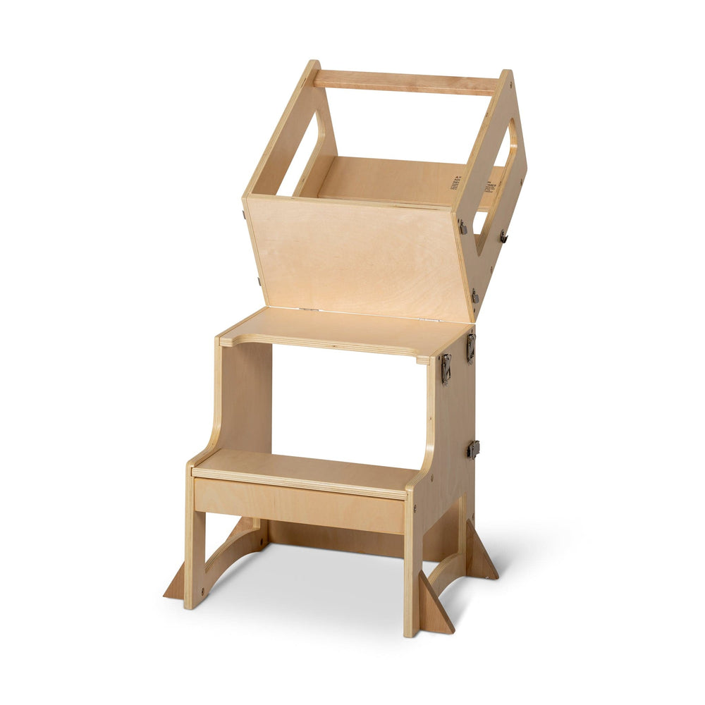 Embrace Versatility: The Tower to Table boasts a dual-purpose design that effortlessly transforms from a toddler tower to a multifunctional toddler table. The tower aspect offers a steady, secure platform for your little one's explorations and enlightening adventures. Conversely, the table facet provides a practical domain for meals, play, or educational pursuits. The Tavolo embraces diverse activities, readily adapting to your child's ever-evolving requirements.