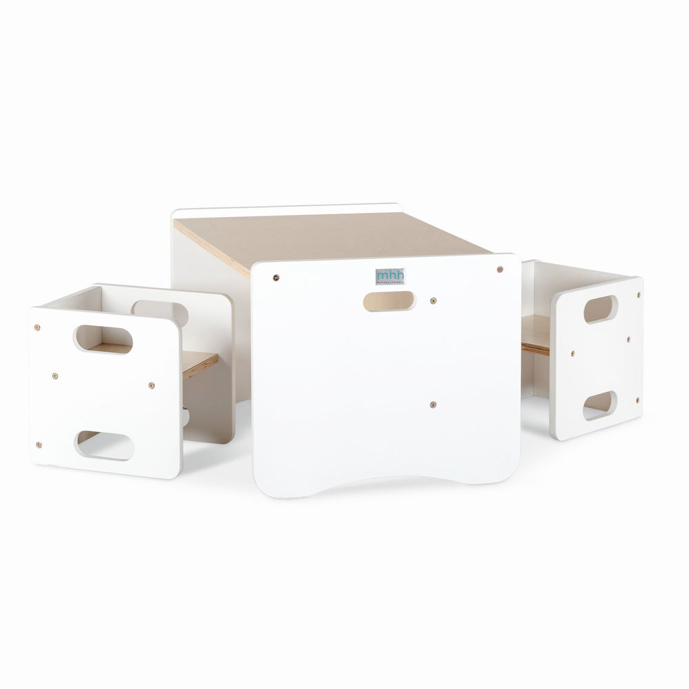 Cube Weaning Table & 2 Chairs - White and Varnish