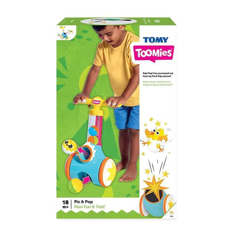 The Toomies Cannon Ball Pic & Pop is a distinct walk-behind toy that gets your little one moving.