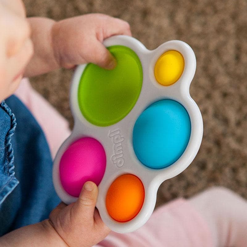 Dimpl Toys are designed to fascinate your child for hours on end. Dimpl are built safely into the sturdy ABS plastic frame and consist of five vibrant silicone bubbles in varying sizes and colours.
