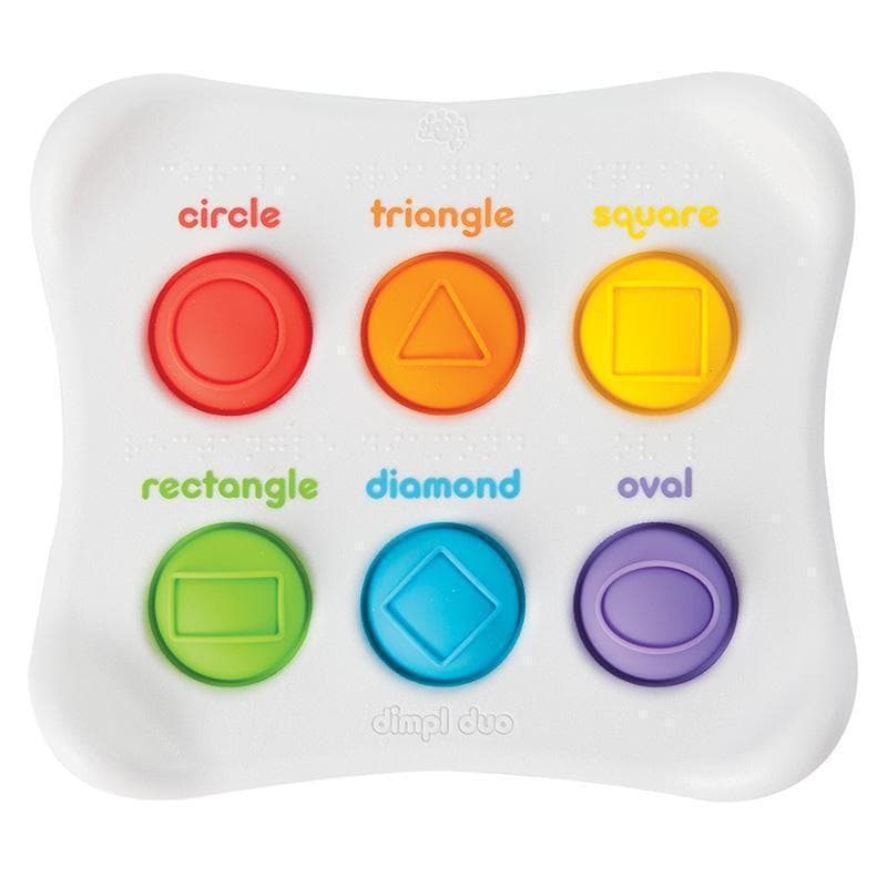 If you have a little learner on your hands, the Dimpl Duo is sure to thrill! On one side, you have six silicone buttons with shapes, each one labelled with its name in English and Braille. Flip the whole thing over and the buttons are smooth, and the labels match the colour. It’s a fun, colourful way for your little one to learn their shapes and colours while improving their reading skills. It’s an all-in-one learning experience!