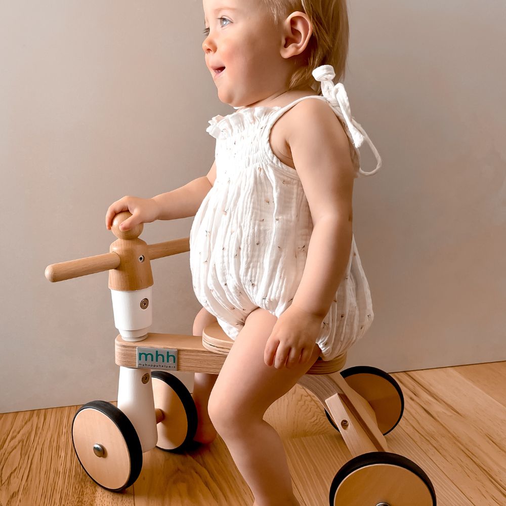 Made from durable materials, this wooden ride on offers a sturdy and reliable option for your little one to explore and play. The steerable front wheel allows for easy manoeuvring while the rubber lined wheels provide a smooth ride ensuring no damage to your floors. With its comfortable seat and high-quality design, this ride on is perfect for hours of imaginative play.