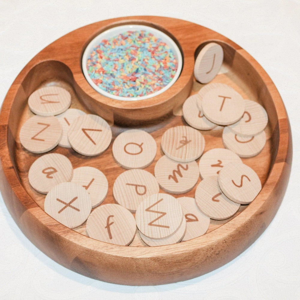 Alphabet discs are a great way to teach your little one the alphabet. Designed for home or classroom, these discs are dual sided and made from engraved birch wood, ensuring they are both durable and sustainable.