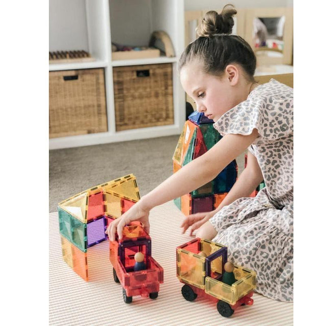 The pieces from the Connetix Car pack can be used separately as a car or connected together to make a train. Connetix Car Packs fostering creativity, imagination and learning through PLAY!