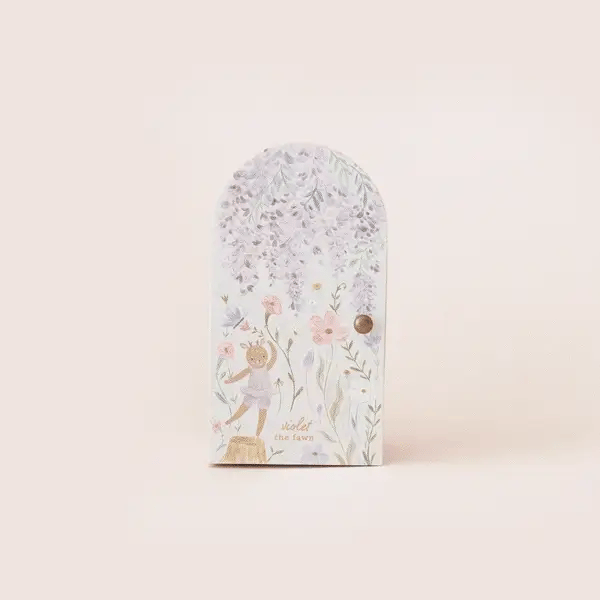 Each Tiny doll comes nestled in a Tiny home, with breathtakingly hand painted watercolor wildflowers and an antiqued bronze door knob that opens to a magical night scene full of twinkling copper foil stars. Collect all 12 to create a beautiful enchanted meadow!