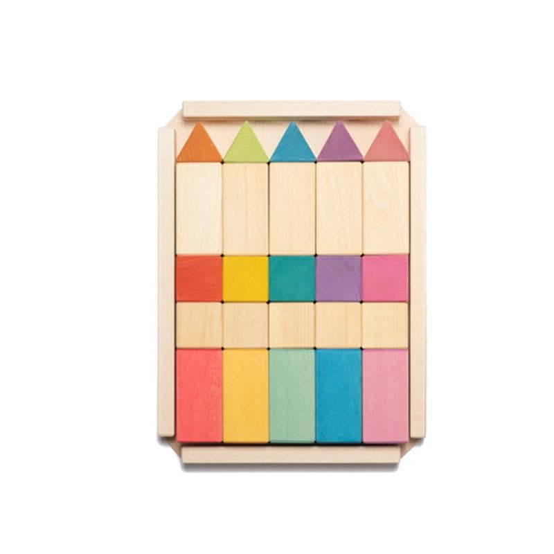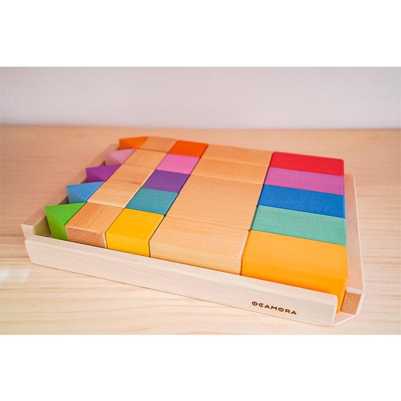 Stunning set of wooden construction blocks, handcrafted in Spain and made from sustainably sourced wood. This set provides endless hours of entertainment and can be used in as many ways as the imagination can create.