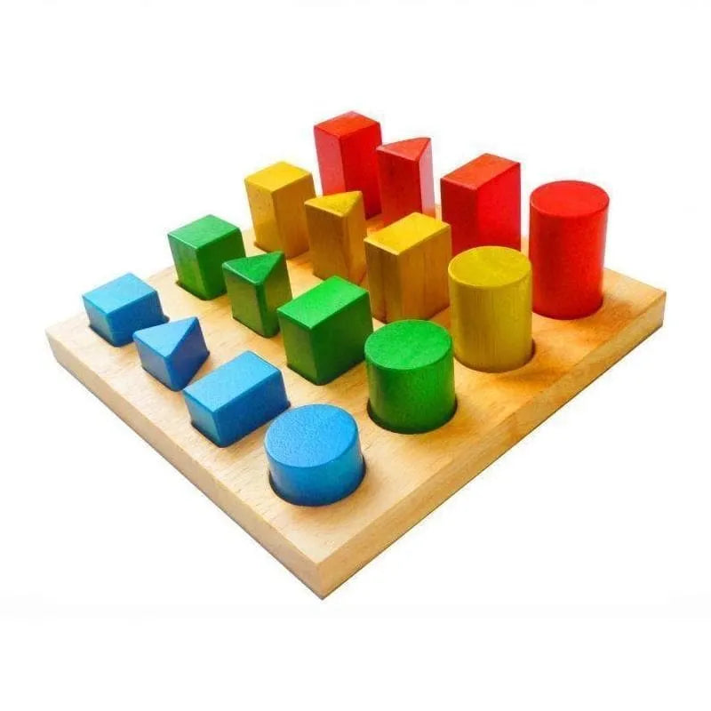 The Shape Sorter Board encourages children to have fun with shapes and colours while sharpening their eye coordination, motor skills and focus. Shape & Size Sorting Board is the perfect toy that mixes colourful shapes that will engage a toddler’s eyes and mind, and is also a learning tool. This wooden puzzle is fun and teaches basic shapes and colours, equipping toddlers with recognition skills that will be crucial to their growth.