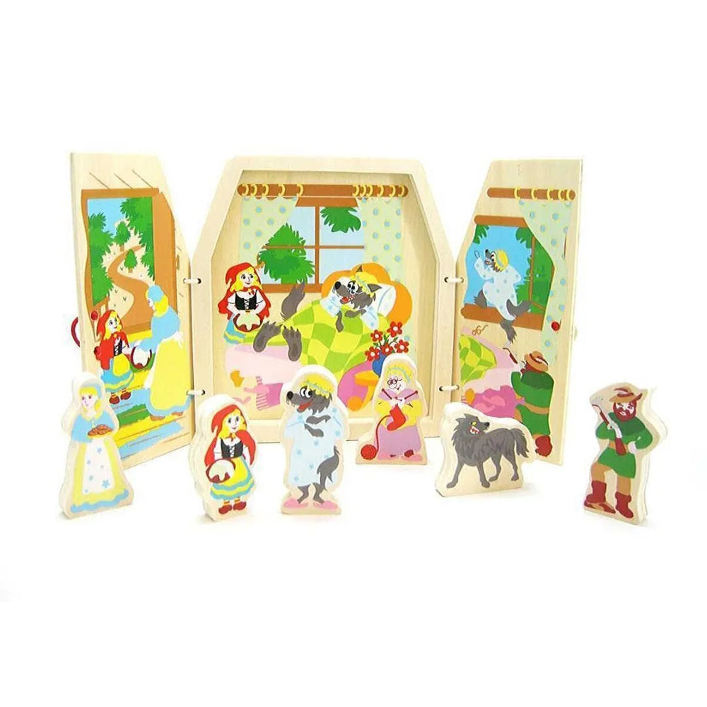 Red riding hood, a fairy tale story in a beautifully made wooden book. Inside the book are wooden figurines and when the book is opened, it will provide the background to the story. This would enhance story telling time and encourage kids to be imaginative.