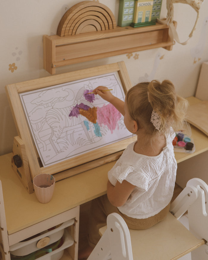 Unleash your child's imagination and artistic talents with this gorgeous Table Easel. A multifunctional masterpiece, it's designed to be more than just an easel – it's a gateway to a world of endless creativity, exploration, and fun.