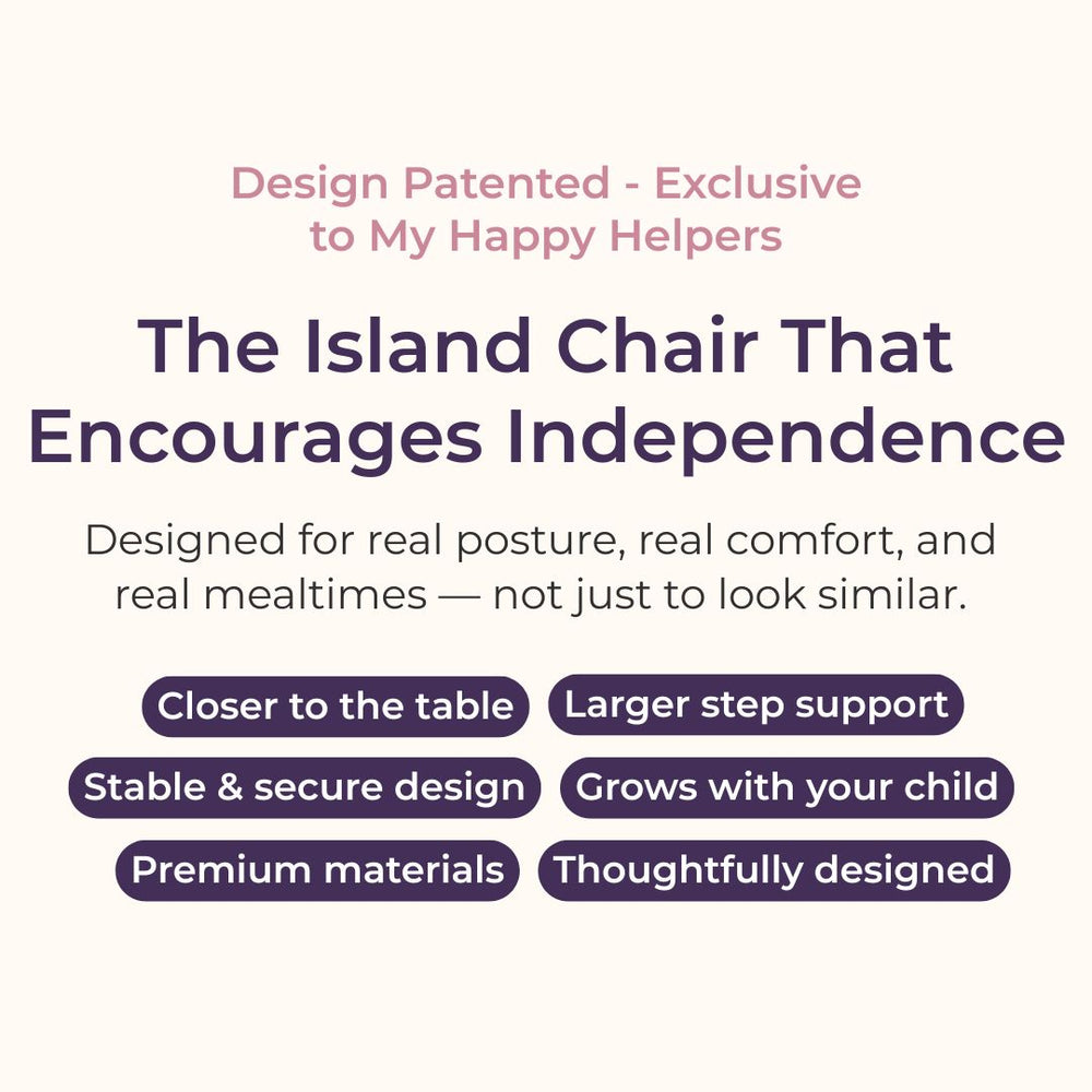 My Happy Helpers Island Chairs are designed for that in-between stage — when your child has outgrown a high chair, but still isn’t quite ready for a regular chair.