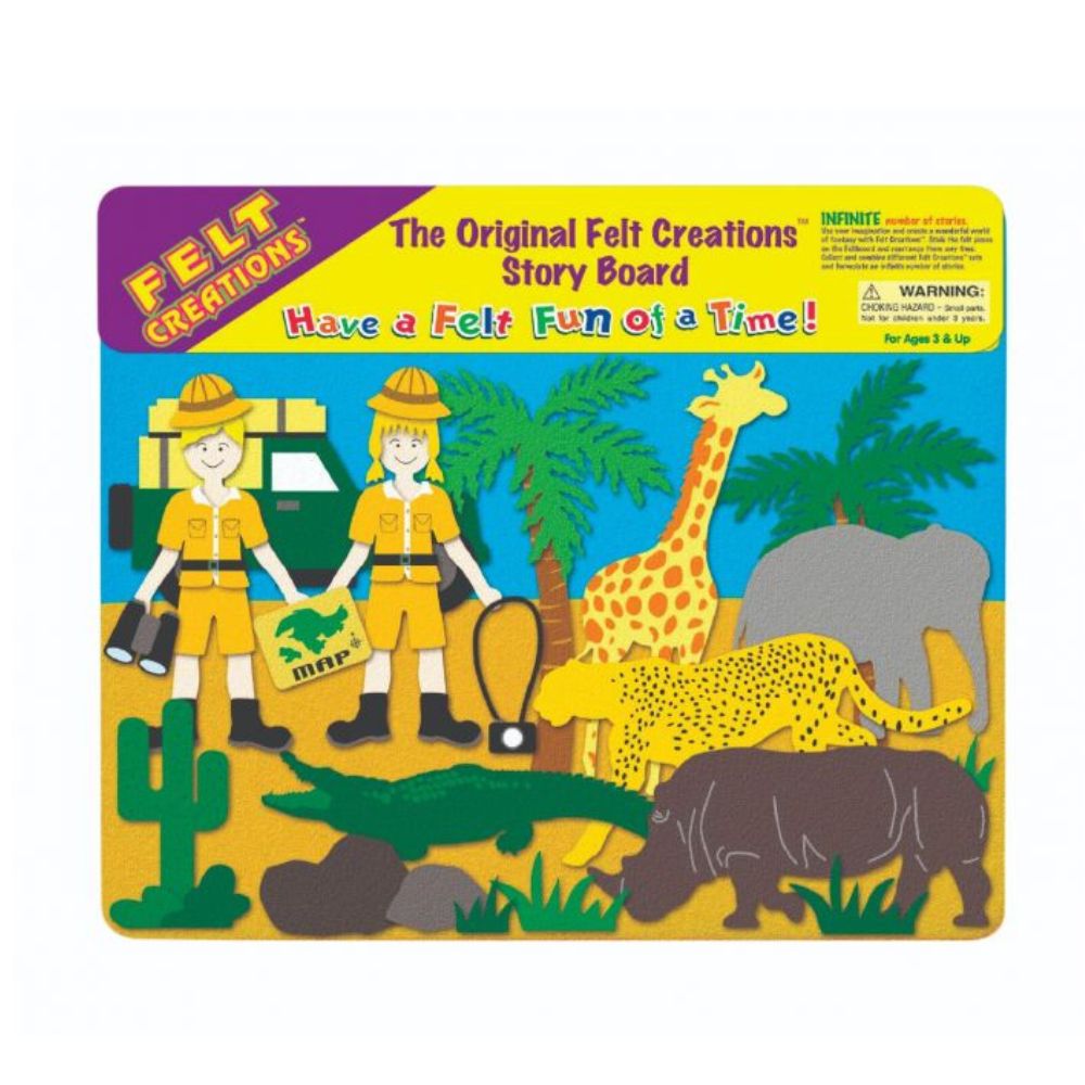 This Felt Creations Set allows you to create your very own unique safari world and adjust it at any time. You can create a fun safari scene by sticking the pre-cut felt pieces onto the board and then rearrange or start over whenever you like.