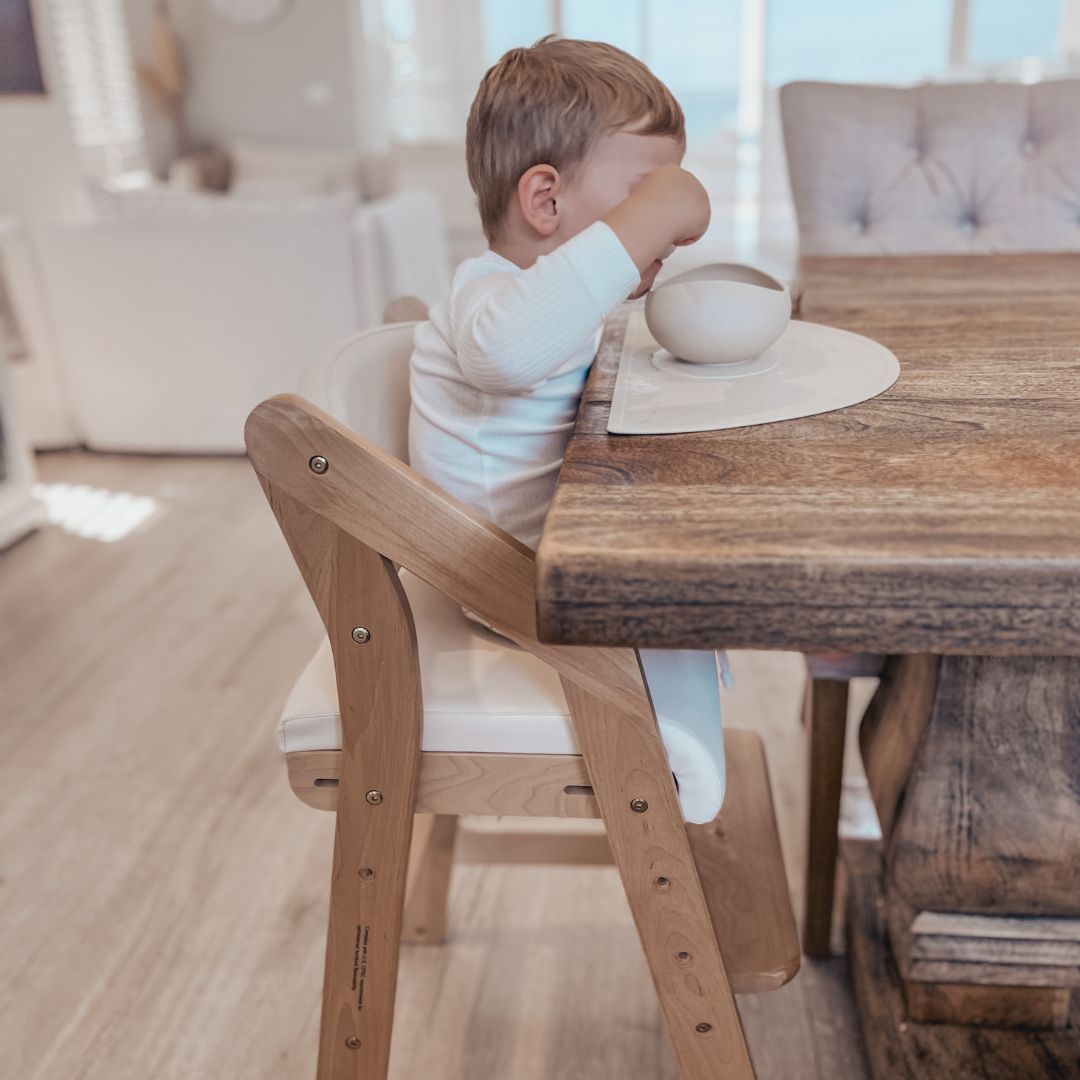 Designed to grow with your child through the stages that matter — creating a comfortable, supported position at the table without constant adjustments.