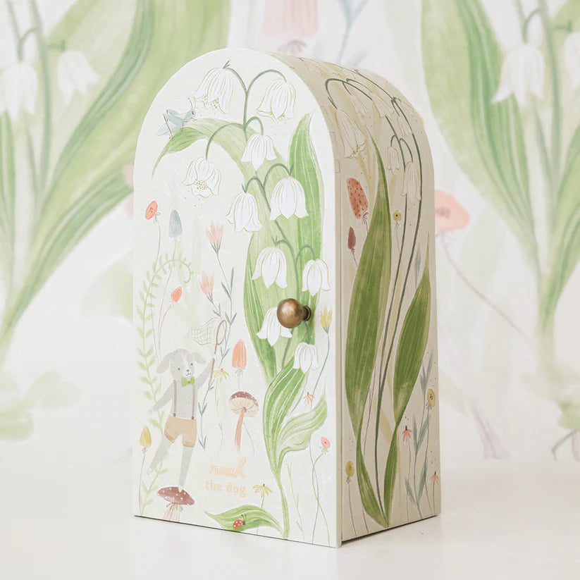 Each Tiny doll comes nestled in a Tiny home, with breathtakingly hand painted watercolor wildflowers and an antiqued bronze door knob that opens to a magical night scene full of twinkling copper foil stars. Collect all 12 to create a beautiful enchanted meadow!
